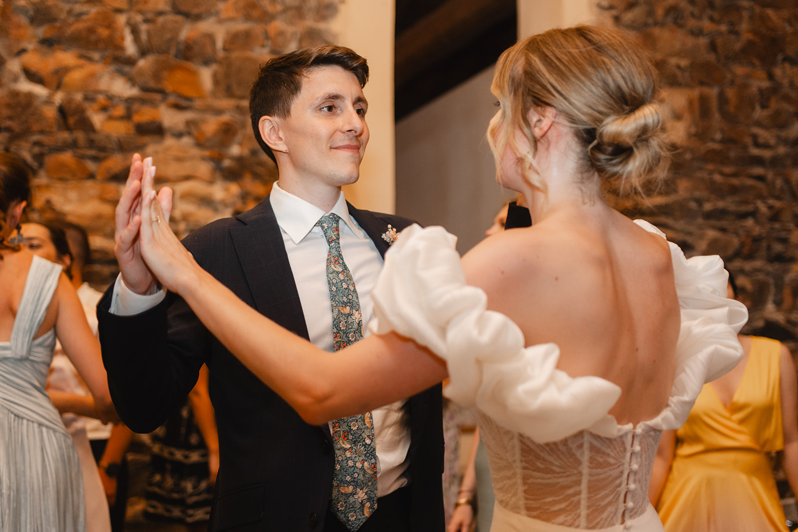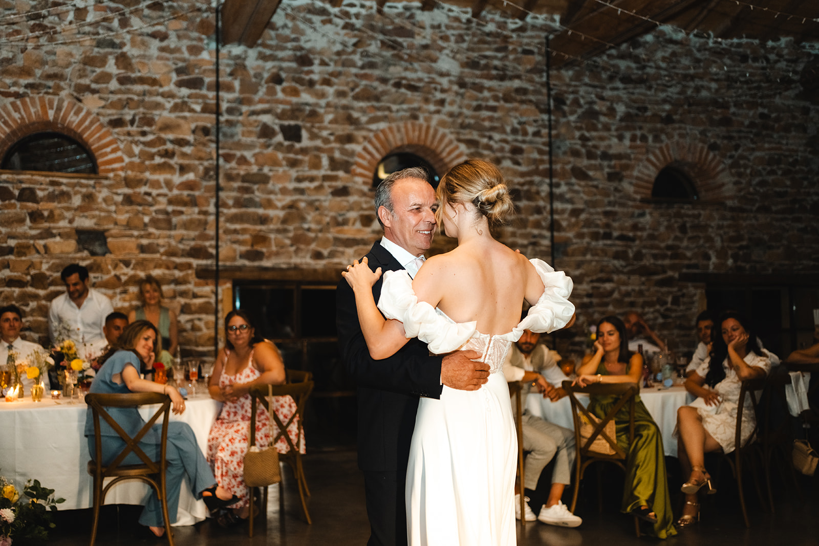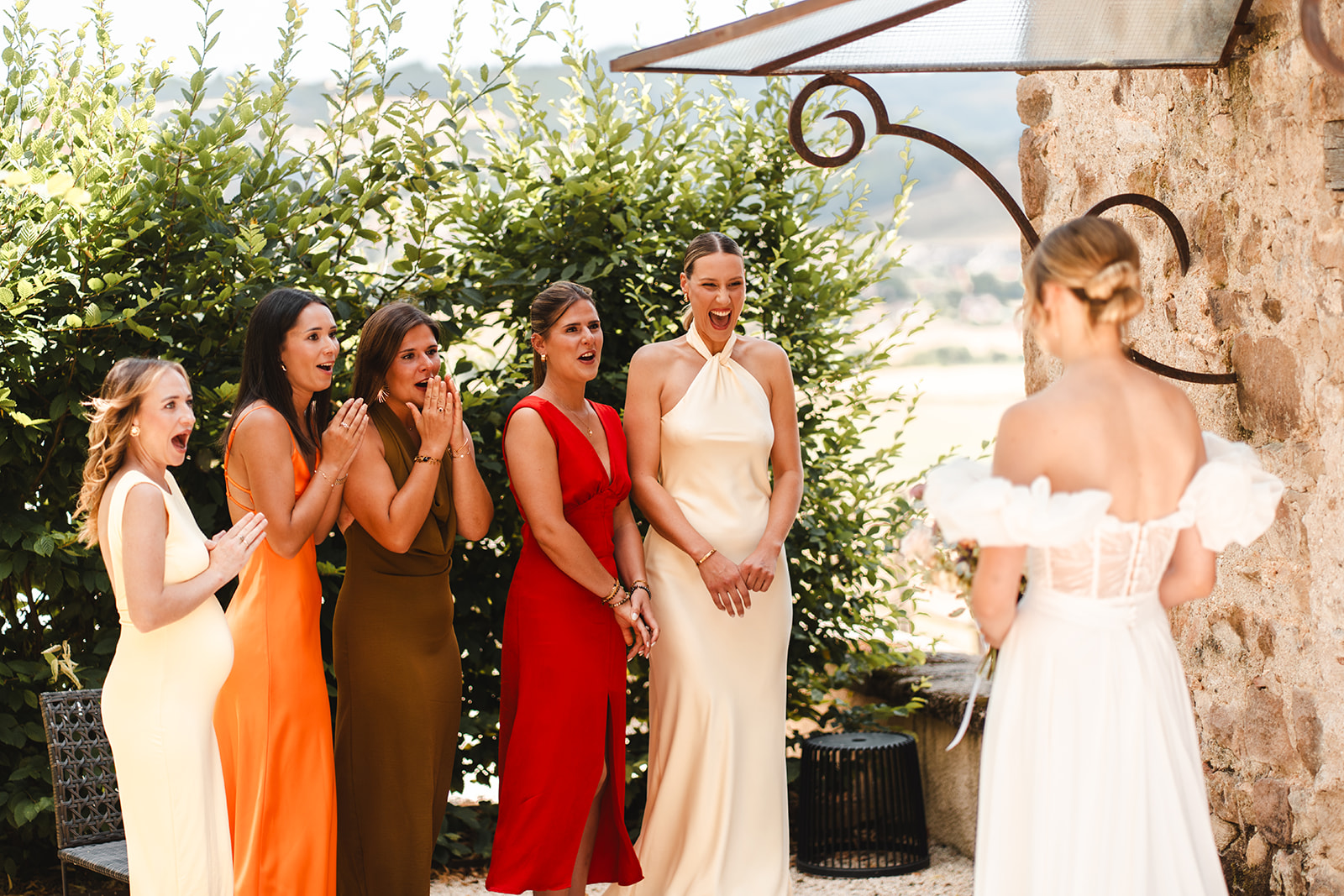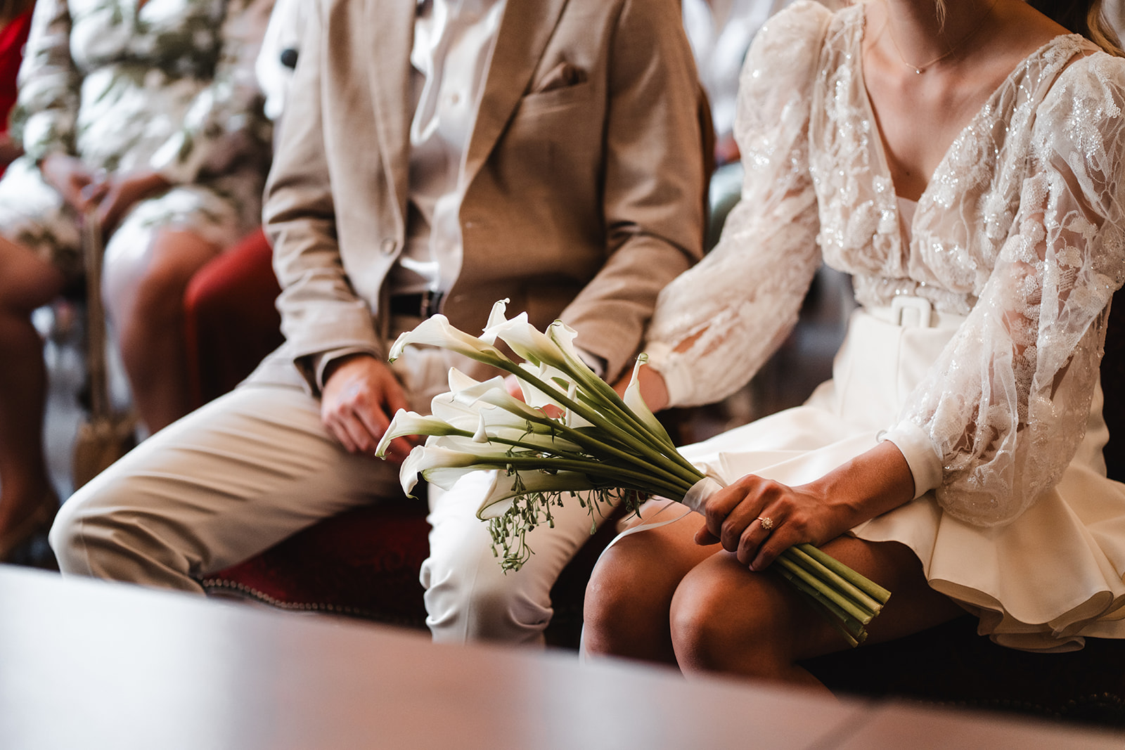 Entre la première rencontre intime des mariés, l’émotion débordante partagée avec ses témoins et le regard fier de son papa en la découvrant, ces instants suspendus ont marqué le début d’une journée profondément chargée en émotions.