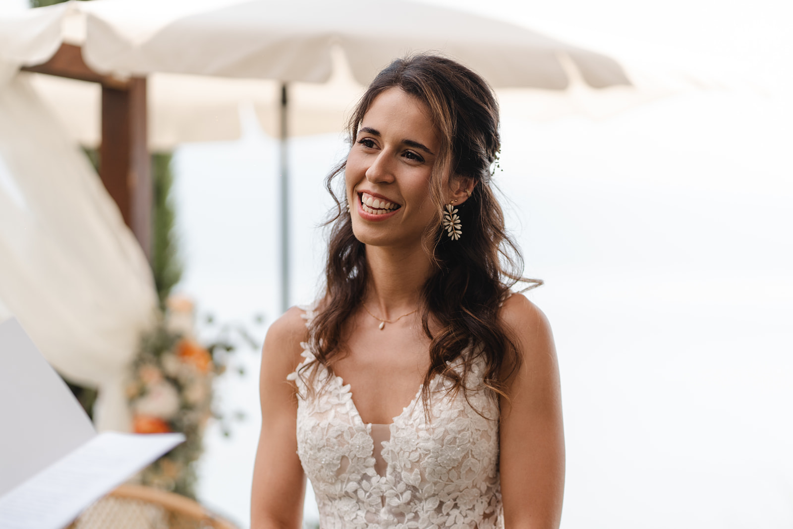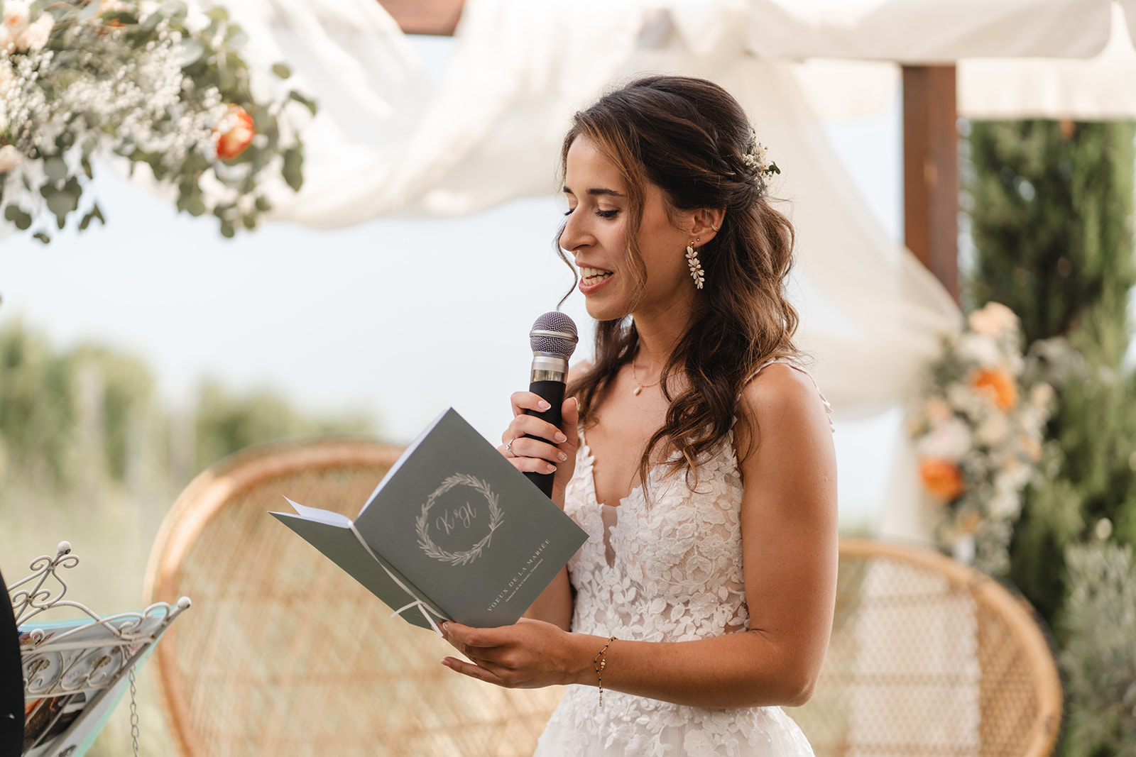 La cérémonie, officiée par la sœur de Katia, a été profondément personnelle et émouvante, d’autant plus lorsque les alliances ont été apportées avec fierté par leurs neveux et nièces.