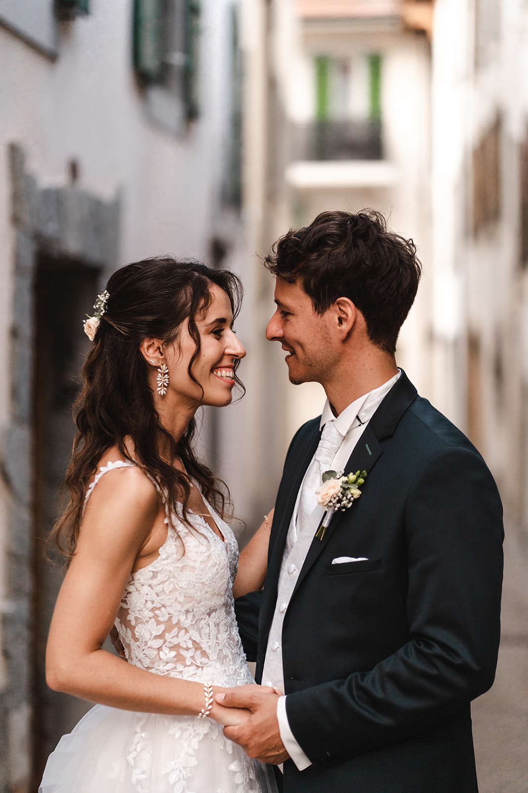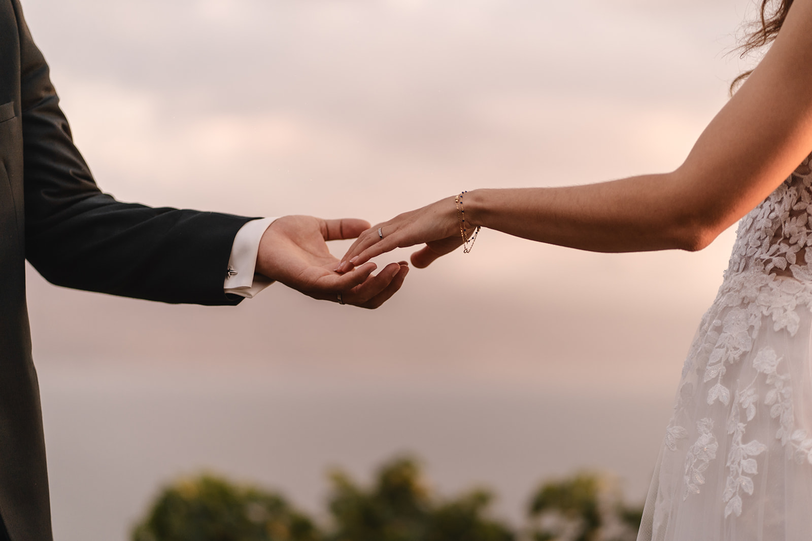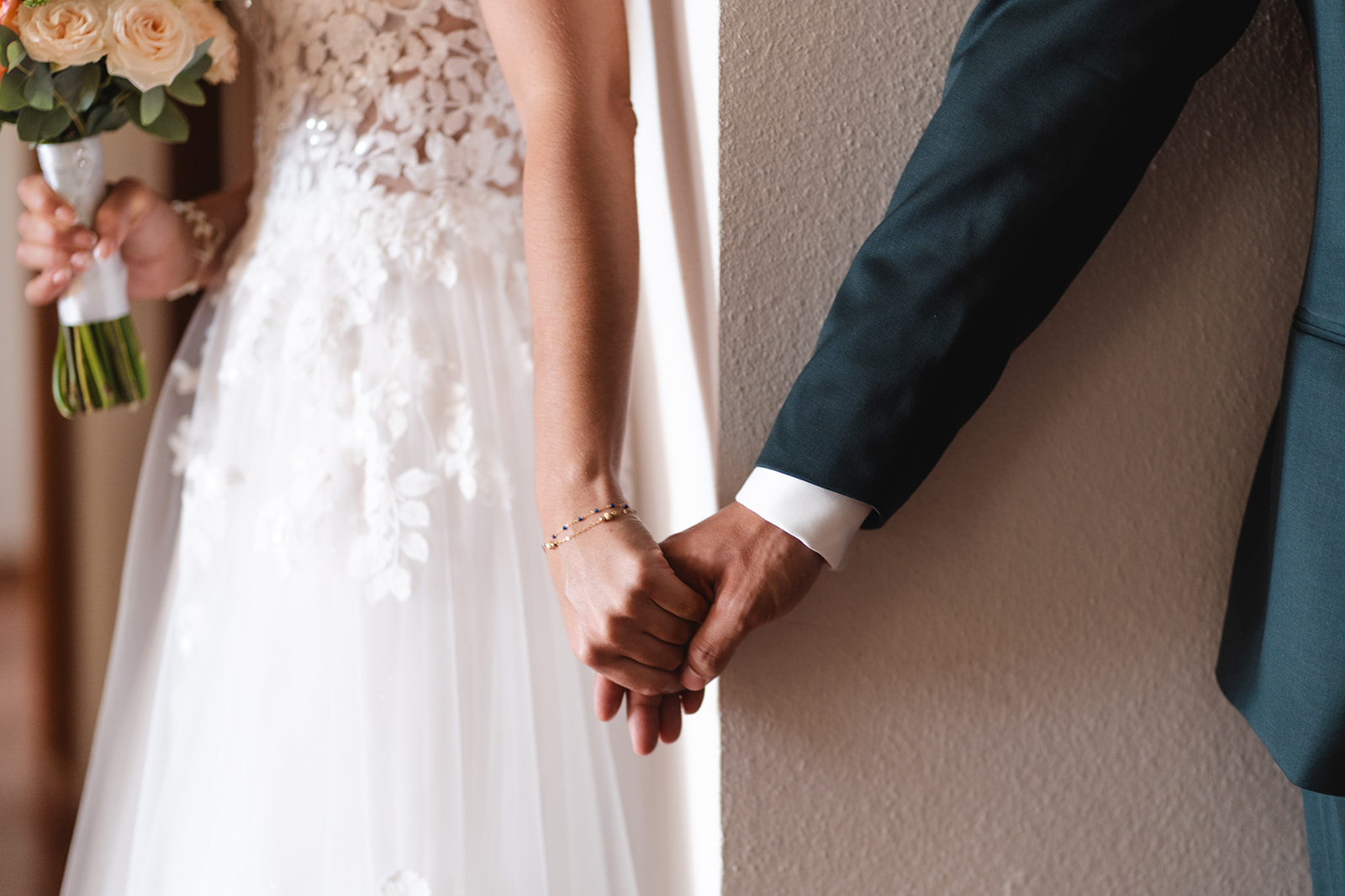 Avant la cérémonie, Katia et Hugo ont choisi un first touch plein de douceur : sans se voir, ils se sont simplement tenus la main quelques instants, laissant l’émotion circuler avant de se retrouver à l’autel.