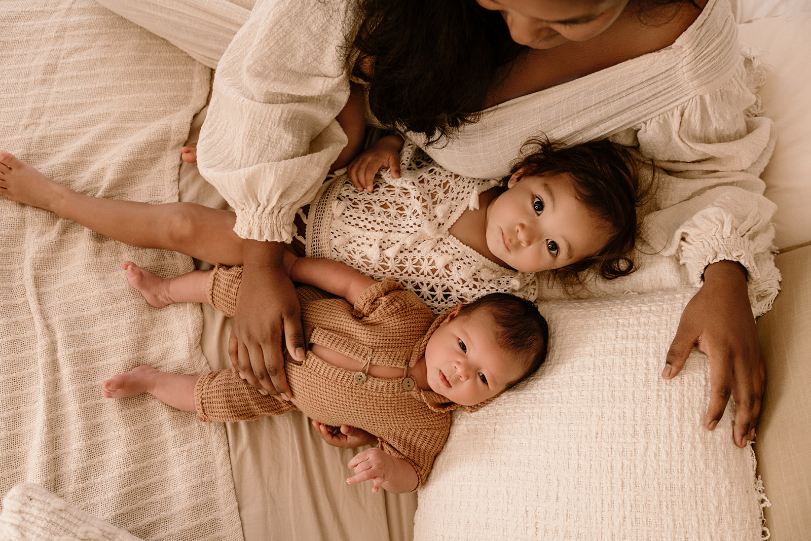 Prévoir des vêtements aux couleurs neutres sans inscription ou marque apparente pour tous les membres de la familles. Pour bébé les accessoires pour l’emmaillotement et le posing sont fournis lors de la séance.